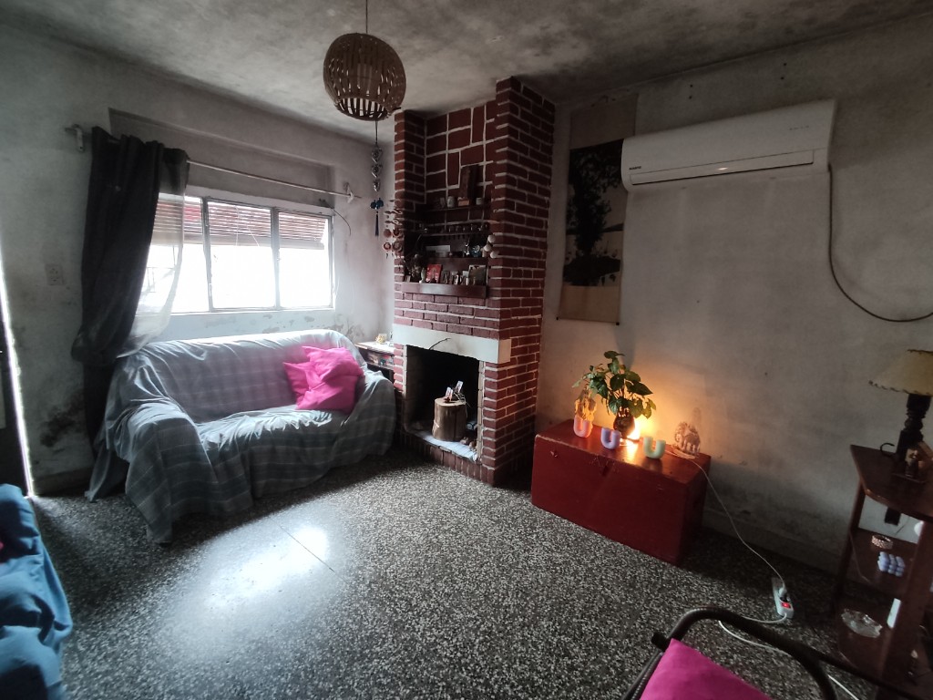 Casa de plancha con cochera al frente. Buen fondo. 2 dormitorios, living comedor con estufa, cocina y baño. Buena ubicación a pocas cuadras de liceo Rubino y centro.